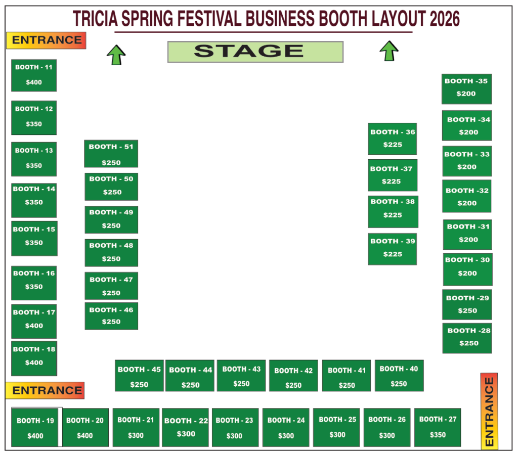 If you are interested in setting up your Business Booth on the day of Spring Festival on June 7, 2026, please complete the Form below and submit to secure your space.  If you have any questions before completing the form, please contact us at: vendorbooths@triciany.org